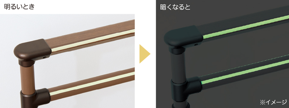 蓄光は、ポイントではなくラインで。暗くなっても、握れる場所を正確にお知らせします。
