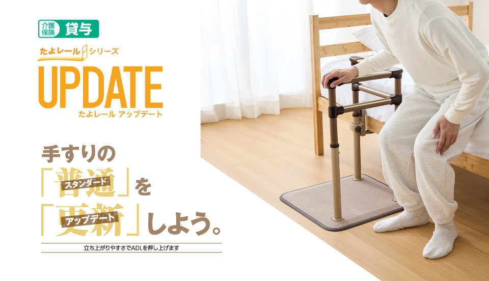 前方に本体より低めの手すりを設置してさらに重心の移動がしやすく、立ち上がりやすくなる「たよレールアップU」をはじめとした専用のオプション品をラインナップしています。